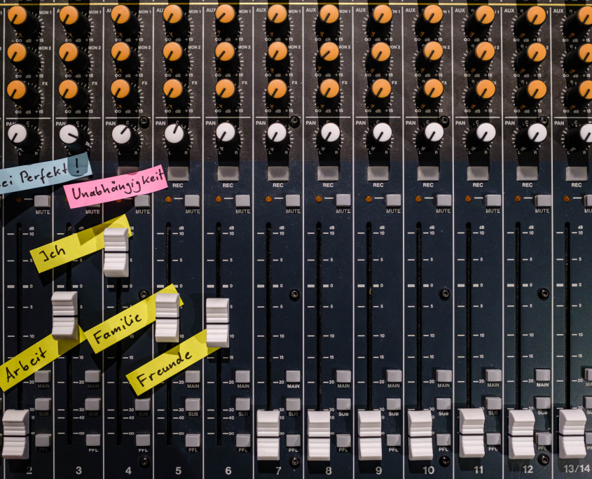 Leben passiert einfach. Aber Du bist der Produzent Deines Lebens: Du bestimmst, wie es klingt. Stell Dir vor, jeder Moment, jeder Tag oder jeder Lebensabschnitt ist ein Lied. Dafür hast Du ein Mischpult und jederzeit die Möglichkeit den Klang Deines (Lebens) Liedes zu verändern: Du regelst die Höhen und Tiefen. Du steuerst die Lautstärke von Input und Output. Du kreierst Deinen Sound mit speziellen Effekten. Du weißt, wie sich Musik anfühlt, wenn alles stimmig ist und harmoniert: dann bist Du glücklich. Ich helfe Dir, damit Du die schlechten Sounds, die Unstimmigkeiten, selbst aussteuern kannst.